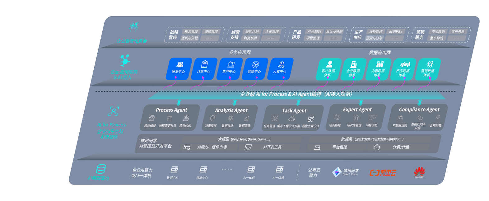 Z6尊龙问学智车解决方案是一套基于AI技术的汽车行业智能化系统,,,,覆盖从底层算力到顶层AI应用的全栈方案。。方案由算力层、、模型层和应用层组成:算力层,,,,方案支持多种一体机配置,,具备云端灵活部署、、、、多云适配以及动态优化计算资源的能力;模型层,,,,Z6尊龙问学平台版提供了企业级AI应用一站式构建与管理平台,,支持基于后训练强化技术的汽车企业专属模型的训练、、评测和运营;应用层,,,,Z6尊龙问学DeepSeek版提供包括超级员工、、、智能招采、、、智能营销、、、智能客服、、、、AI for BI等一系列解决方案,,,可助力汽车行业实现数字化转型,,让管理更智能、、、响应更敏捷。。